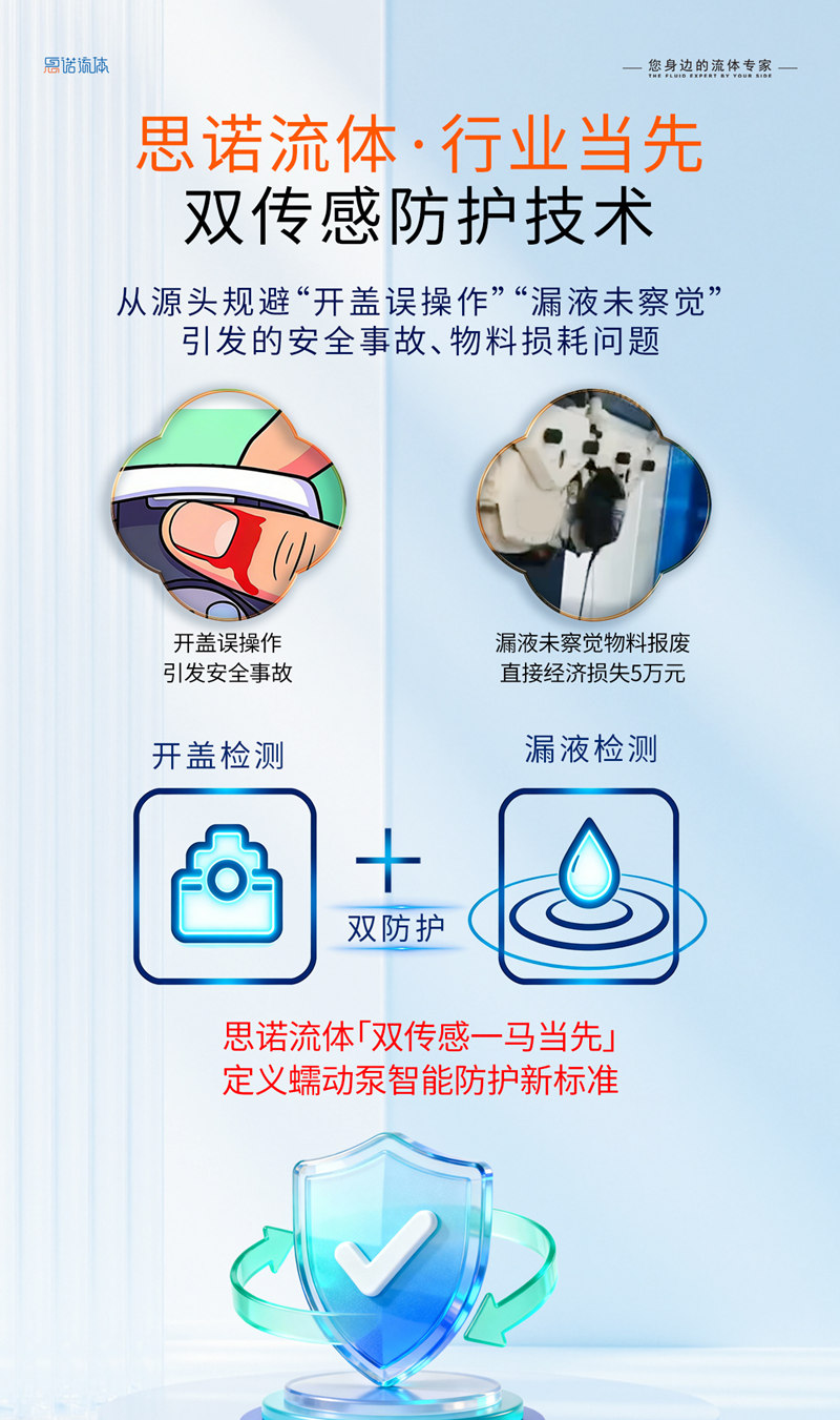 保定思諾流體科技有限公司是行業(yè)內(nèi)較早推動安全防護(hù)系統(tǒng)性升級的企業(yè)。在傳統(tǒng)蠕動泵僅依靠機(jī)械結(jié)構(gòu)進(jìn)行被動防護(hù)的時(shí)期,思諾流體的研發(fā)團(tuán)隊(duì)就開始思考:如何讓設(shè)備具備主動識別風(fēng)險(xiǎn)、提前干預(yù)的能力?正是基于這一前瞻性思考,公司率先將“開蓋檢測”與“漏液檢測”雙傳感器技術(shù)系統(tǒng)化應(yīng)用于蠕動泵產(chǎn)品,開啟了行業(yè)智能主動防護(hù)的新階段。