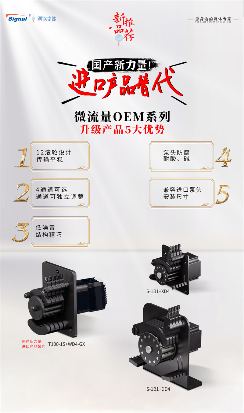 保定思諾隆重推出新微流量OEM系列產(chǎn)品——WD4、XD4、DD4,標(biāo)志著國產(chǎn)微流量蠕動泵正式以技術(shù)創(chuàng)新破局,成為不可忽視的“國產(chǎn)新力量”。本系列產(chǎn)品實現(xiàn)對進口產(chǎn)品的直接替代,為關(guān)鍵領(lǐng)域提供自主可控的精密流體解決方案。
