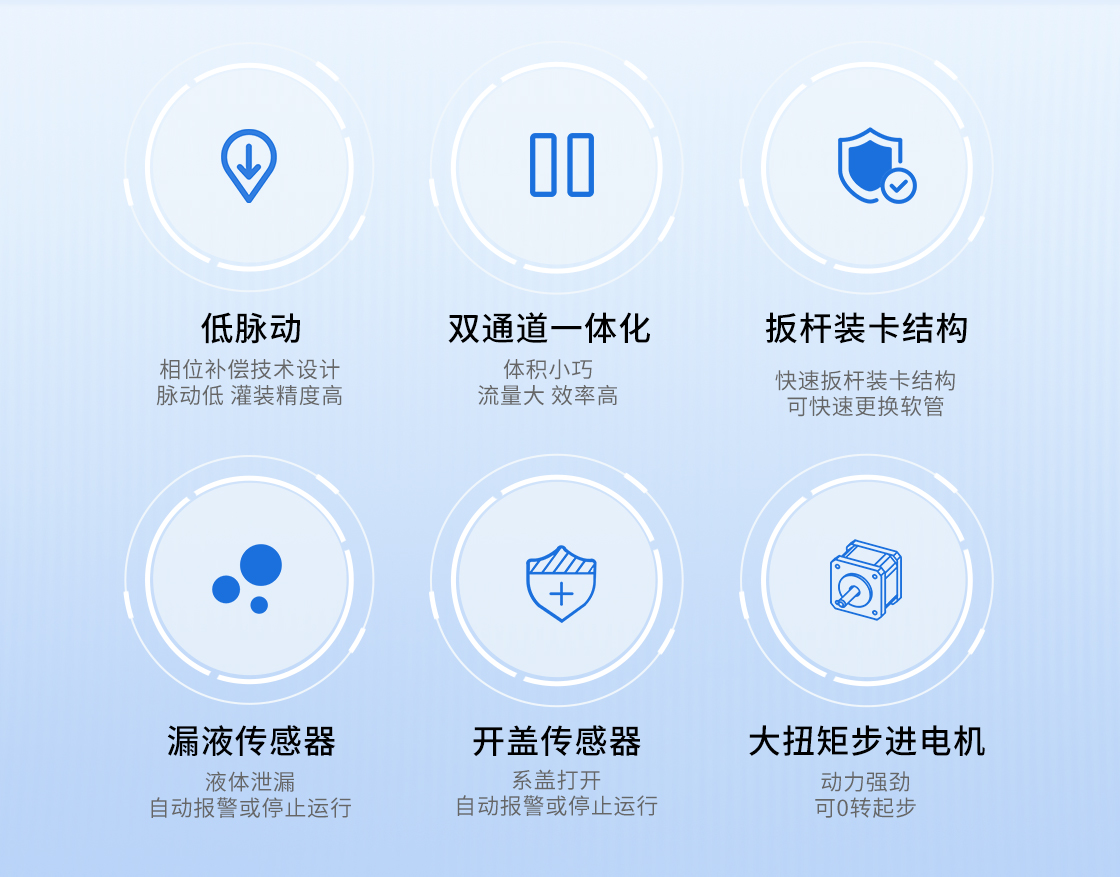 1-相位補償技術設計,脈動低,灌裝精度高
