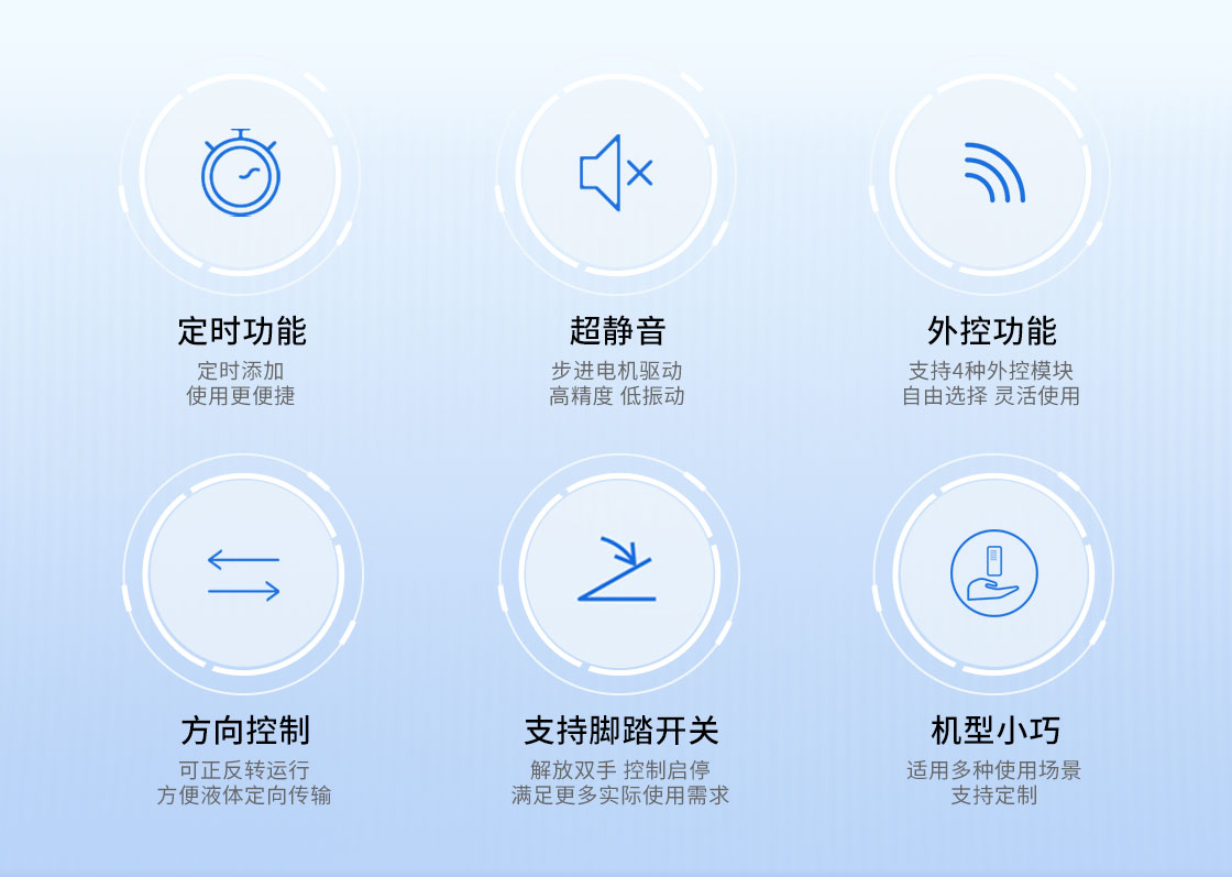 定時功能:定時范圍0.1S-99Hr 步進電機驅(qū)動,128倍細分,低振動 考究的工業(yè)設計,外觀時尚、小巧,做工精細